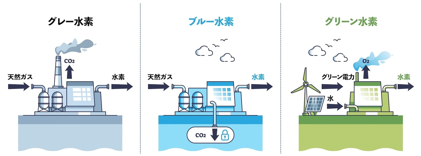 水素の種類について(グレー水素・ブルー水素・グリーン水素)